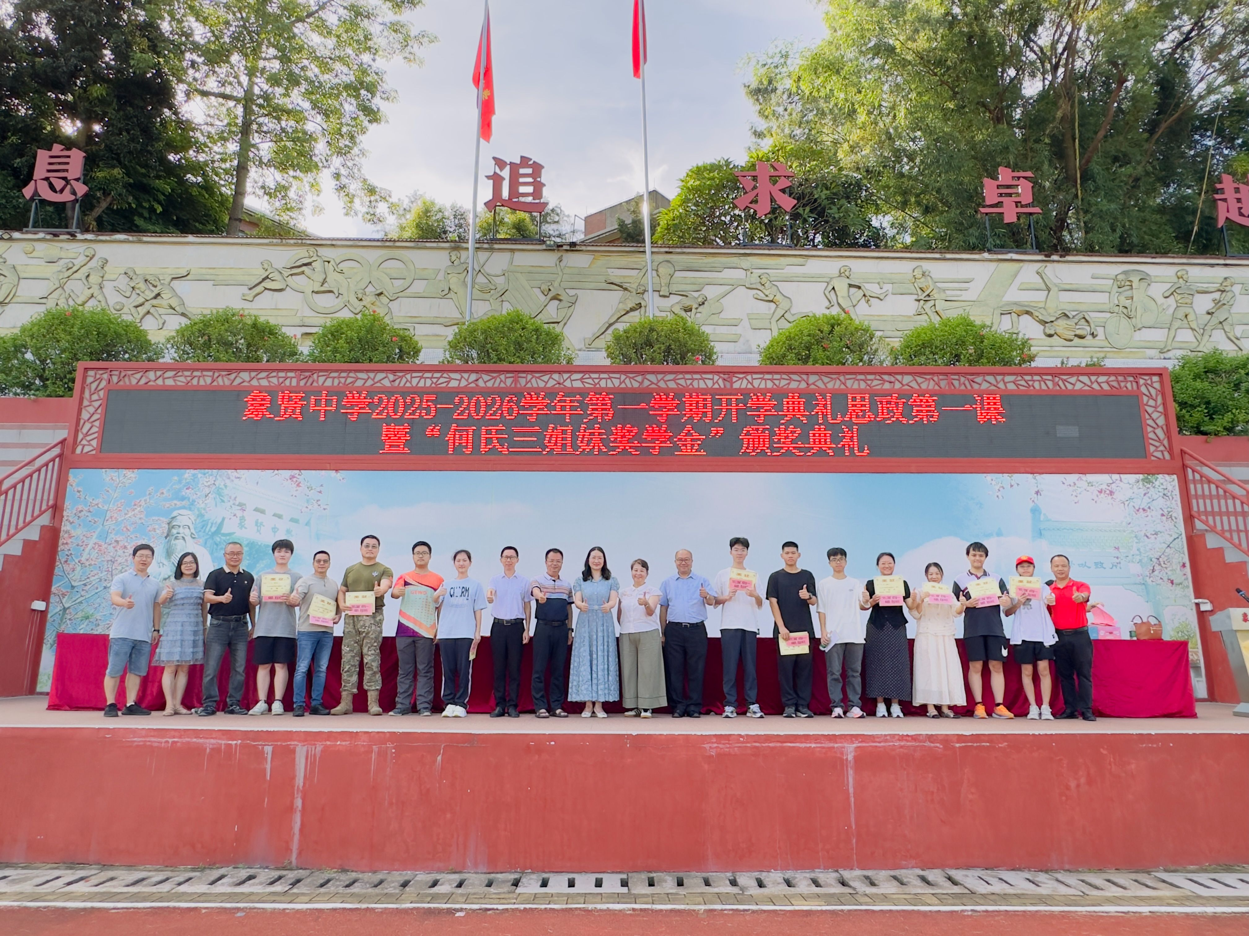 9月1日,在广州市番禺区象贤中学开学典礼现场,该校举行了第12年“何氏三姐妹奖学金”颁奖典礼。