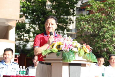 广州实验教育集团花都实验学校前校长王齐为学生们带来新学期寄语,他希望同学们记住学校的四张名片:会微笑、会感谢、会学习、会锻炼。该校校长陆常波希望学生们能够弘扬“石敢当”精神,做勇于担当的“金石娃”,做志向远大的“金石娃”,做善于思考的“金石娃”,做大胆实践的“金石娃”。