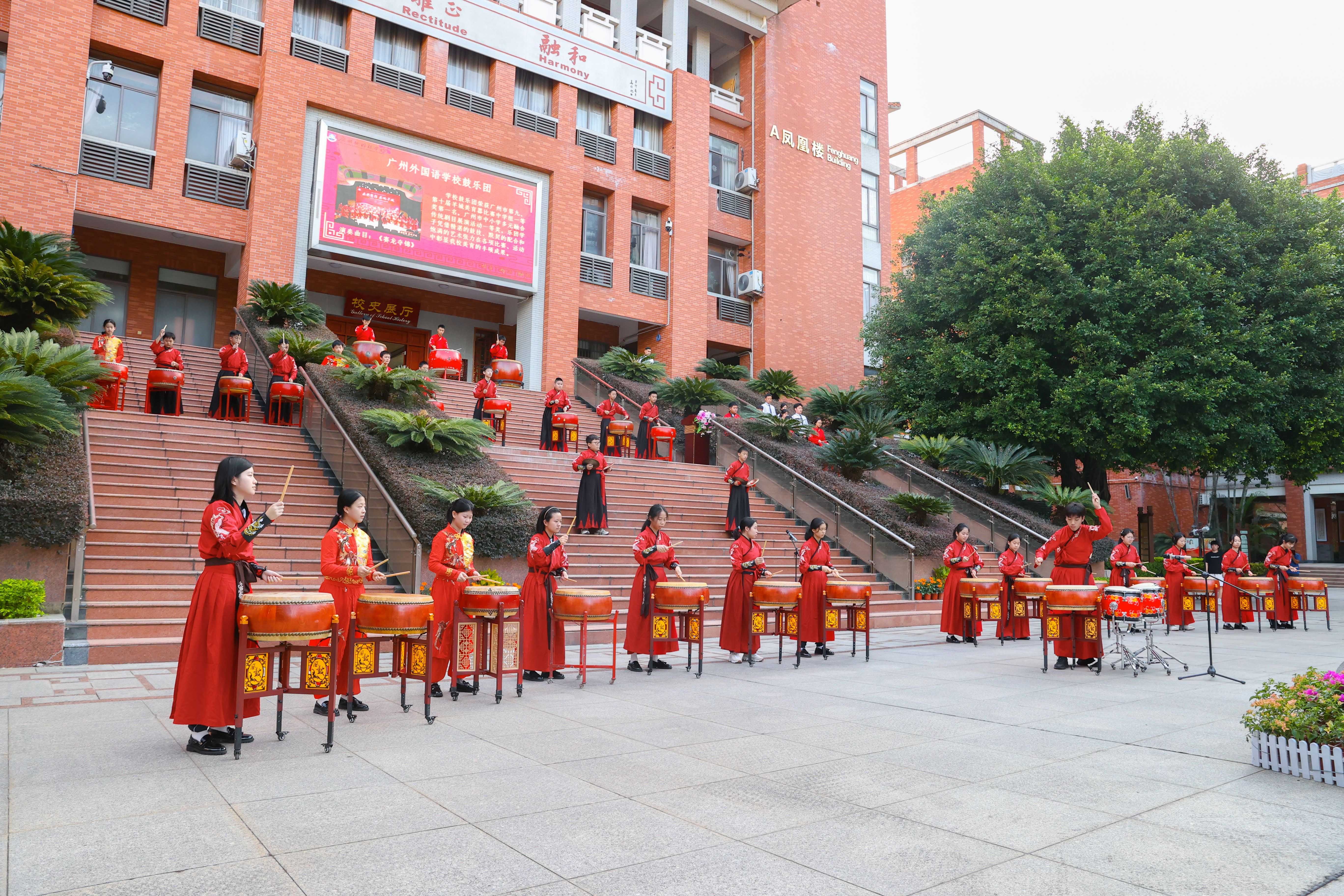活动现场,该校鼓乐团队员们还为全校师生们演奏了《赛龙夺锦》,迎接新学期的到来。