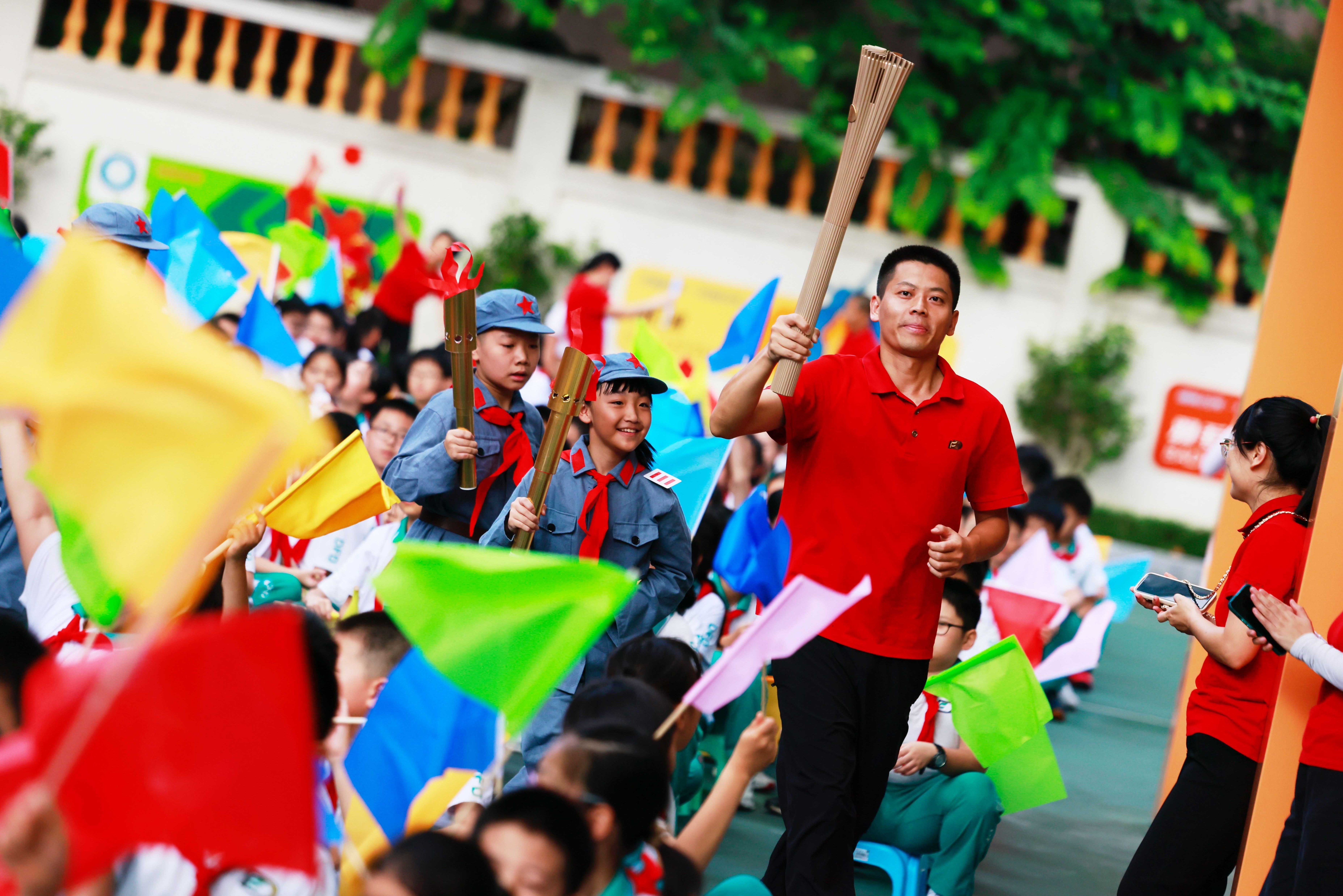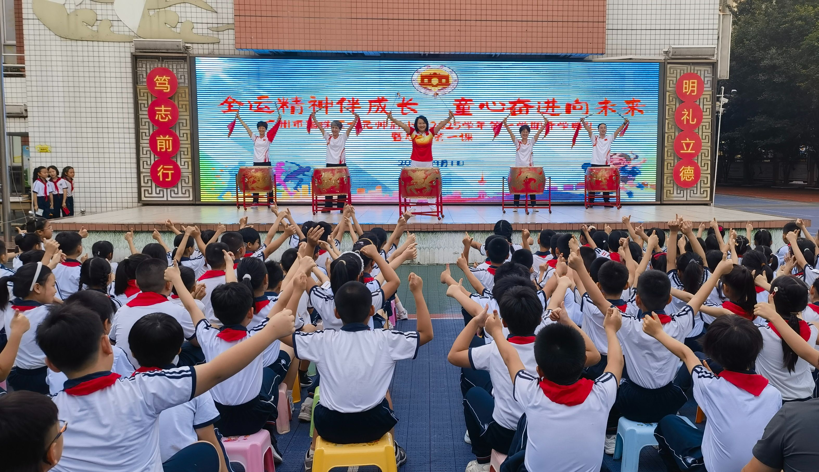 9月1日,广州市越秀区文德路小学以“一起‘潮’志愿,助力十五运会”为主题开展新学期开学典礼。